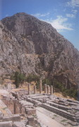 コリントス湾の北岸パルナッソス山(2457m)南麓の急峻な斜面にアポロン神殿がある。 そのアポロン神殿を中心とする遺跡がデルポイである。