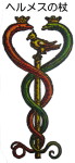 へびは回生と薬草を発見する力があると信じられ神聖な動物とされているため 杖に一匹のへびがまきついた姿でいる。』