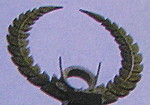 羊歯印を別の考え方をしてみたい。 日本に松田という姓がある。 この姓の由来として ペルシャの崇拝するアフダマズダー神からという説がある。 自動車の”マツダ”のHP 「マツダのビジョン」「社章について にも由来が書かれている。 アフダマズダー のマズダがマツダ 松田 になったというわけである。 「MATUDA」じゃだめなんですよね「MAZDA」でないと!! 漢字の読みは本来当て字であり 同じ読みでも たとえば 阿部 安部 安倍 阿倍 と表記されるが読み・意味するところは 同じであるということです。 同じように 松平 の読みは マツダイラ であり、 これも アフダマズダーからなる ペルシャ系の民族(平家)であったのではという もう一つの理由です。 そう考えれば、もともと源氏を名乗る徳川氏が、ペルシャの紋章を掲げ 平家側をも味方につけ 関ヶ原・大坂の陣でも勝ちぬくことができたと考えるのはいかがでしょう。 以上 羊歯印の形から また マツダイラ という名前から ペルシャ民族(平家)との関連性をあげてみました。 よって 羊歯印には 『蛇の目』あるいは『へび』がいる。と推測させていただきます。 違う言い方をすれば羊歯印は有翼日輪である。 ちなみにこの4節形状が蛇の目のもの「蛇玉もなか」を調べていたら加藤清正と重なる部分があり 富山県高岡市 妙伝寺に伝わる「加藤清正公絵図」の兜と兜の前立てが似ていることを確認できる。 (2009/1/7) |