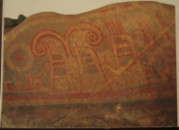 参考文献 *5 日本歴史展望 第1巻 原始ー古墳時代 「埋もれた邪馬台国の謎」 責任編集:上田正昭 田辺昭三 旺文社 P260〜261 *6 福岡県吉井町 珍敷塚古墳の写真のみ 週間朝日百科「日本の歴史42」 1-285 朝日新聞社 上記資料「埋もれた邪馬台国の謎」 には、他にも数点彩色壁画が掲載されています。蛇の目模様とはっきり判断できる写真を引用させて頂きましたが、他に大陸・海外と思われる船の壁画もあります。 蛇の目模様が、海外から伝わってきたことがよくわかり研究に広がりを見せます。 しかもこの蛇の目模様が、「不思議発見!!」か何かの番組でも紹介されたようで、アメリカ大陸、インカ帝国のほうにも伝播しているとのことです。アメリカ・インカの方までと言いますと日本のものが中国・朝鮮経由という可能性が低くなります。 またそちらの方も調べていきたいと思います。 上記著書「日本歴史展望」 ・・ 数年前に 図書館の除籍を受け1巻のみ手に入れたが今年(07年)の配布で7巻、合計8巻手に入れることが出来ました。写真や内容も良いものなのに除籍だなんてもったいない。ラッキーでした。 興味のある方 このシリーズ一度目を通してみるのも楽しいと思います。 |