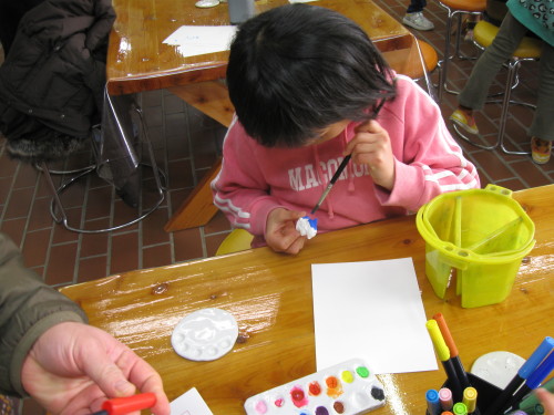 ちなみに巳子(長女)がやっているのはEBアートといって石膏に色を塗ってペンダントやブローチなどを作る教室。