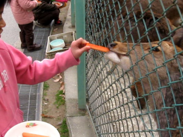 シカ、サル、ゾウなどに エサを与える事ができる。