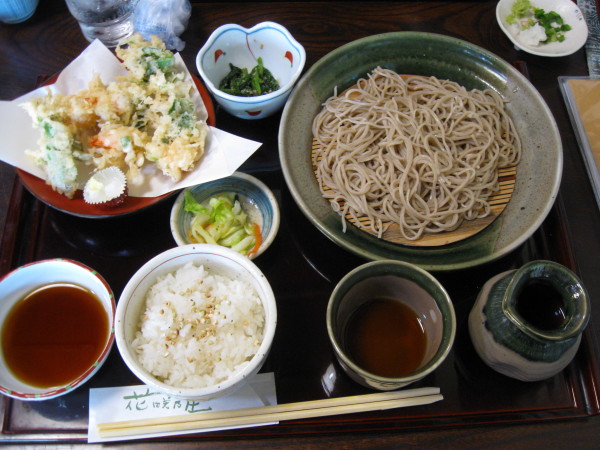 生の蕎麦の実を軽く炒って御飯にかけてあるのかなぁ? かりっと蕎麦の風味と程よい塩味でこれシンプルだけど最高に美味い。(蕎麦ももちろん腰があって美味しい~~~。) |