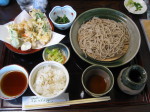 蕎麦の実御膳 1350円 かき揚げと蕎麦の実の振りかけてある御飯とセットになった定食。