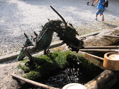 わたくし達がまず手水舎で清めていると、ちょうど反対側の社務所?公会堂からサークルでもあったのでしょうか、おばちゃんたちと宮司さんらしき方が続々出てきたんですよ。
