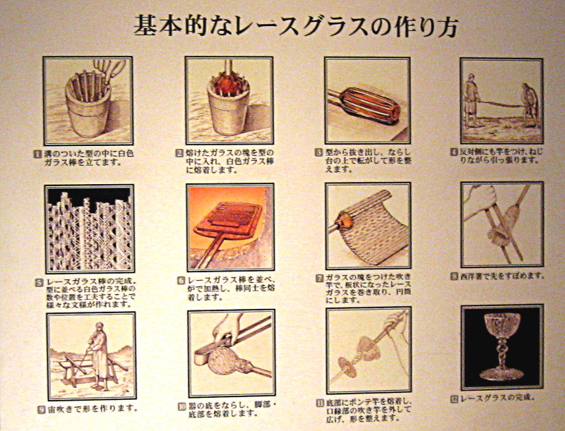 | ガラスの歴史は古く、紀元前4000年より前にメソポタミアや古代エジプトで二酸化ケイ素(シリカ)の表面を融かして作製したビーズが始まり。 |