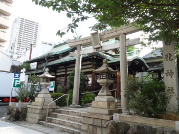 県道107号線の東側堀川沿い堀川東通りを北上していくと白龍神社の幟が・・・。しかし、カーナビが示すのはもう少し北。後で調べてみると先に見た白龍神社は洲崎神社の摂社のようで、そちらにも蛇石が祀られているようでした。また、加藤昭さんの記す伝記からも洲崎神社は船祭りと言われる『洲崎の天王祭』もあるようなので船着場は後者中区栄の方でしょうか。また、むかし名古屋には白龍神社がいくつもあったようです。