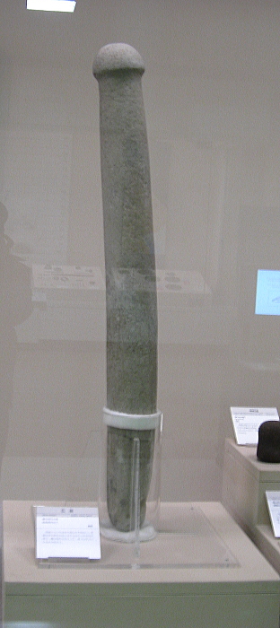 『用途は明らかではない。明治時代、このかたちの石製品が皇室に献上されて皇室の御物となったことから、「御物石器」という名称が付けられた。』 |