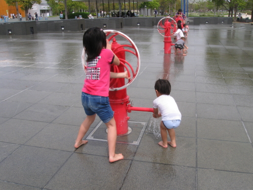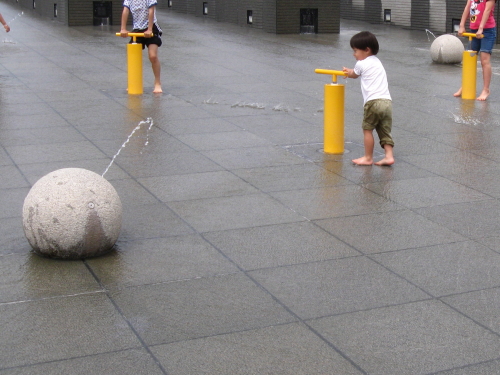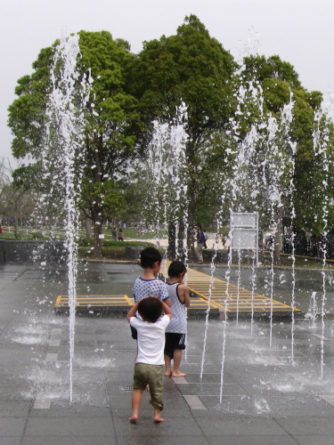 初夏のGWあたりから残暑9月いっぱいは噴水やジャブジャブ池も稼働する水遊び広場もあります。