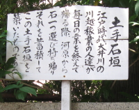 | 参道の石垣は江戸時代に川越稼業の人達が毎日仕事帰りに一つづつ持ち帰り積み上げたもの |