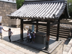 「寛永3年(1626)の創建 小天守台の金明水井戸屋形。水面までの深さ33m。伝説によると、井戸水の毒気を抜くため黄金数枚を水に沈めたと言われておりましたな。」 |
