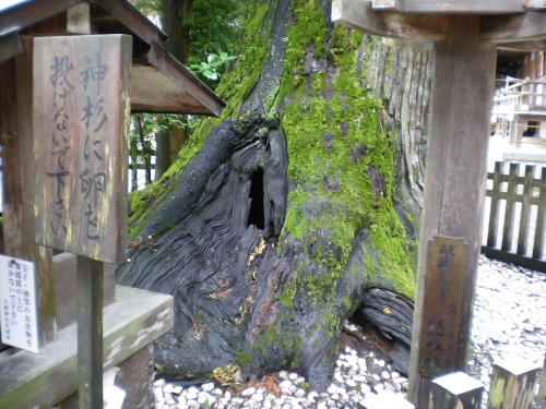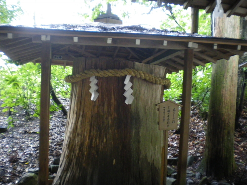 しるしの杉、おだまき杉が、スパッと綺麗な切り口を見ると、大事にされていたか微妙です。三ツ杉が神紋であるならば境内に生える杉の木は御神木であり、仮に倒れたり枯れそうになった時に挿し木や接木などをしてこなかったのか疑問が残ったのです。