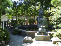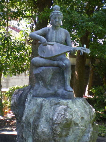 弁天様という別称で古くから親しまれていた縁をもちて、八角の神池の中にその御神像昭和五十六年に祀り、琵琶持つお姿にちなみ妙音弁財天と名付けられ、音楽芸能の導きの御神として御神徳を広めております。 |